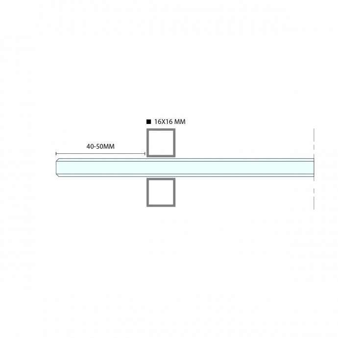 Tirador fabricado en aluminio de 16*16mm. Dimensión de largo 1950mm. No requiere mecanizado de vidrio.