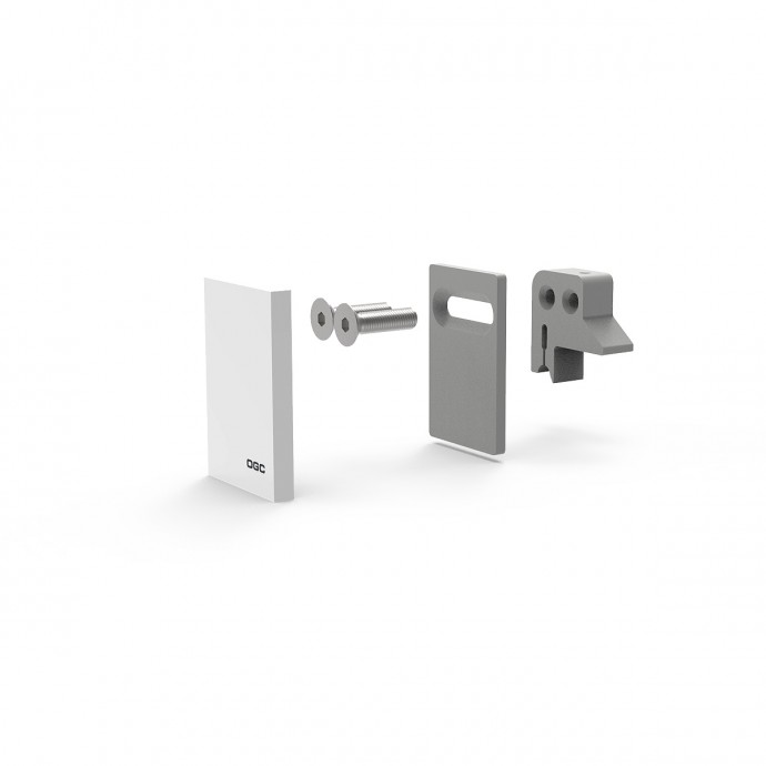 Fabricado en PLA color gris, y tapeta embellecedora en aluminio anodizado 15 µ. Corner para poder hacer instalaciones con fijo lateral a 90º con con los perfiles de guía y guía fijo de la SERIE ELEVA700.