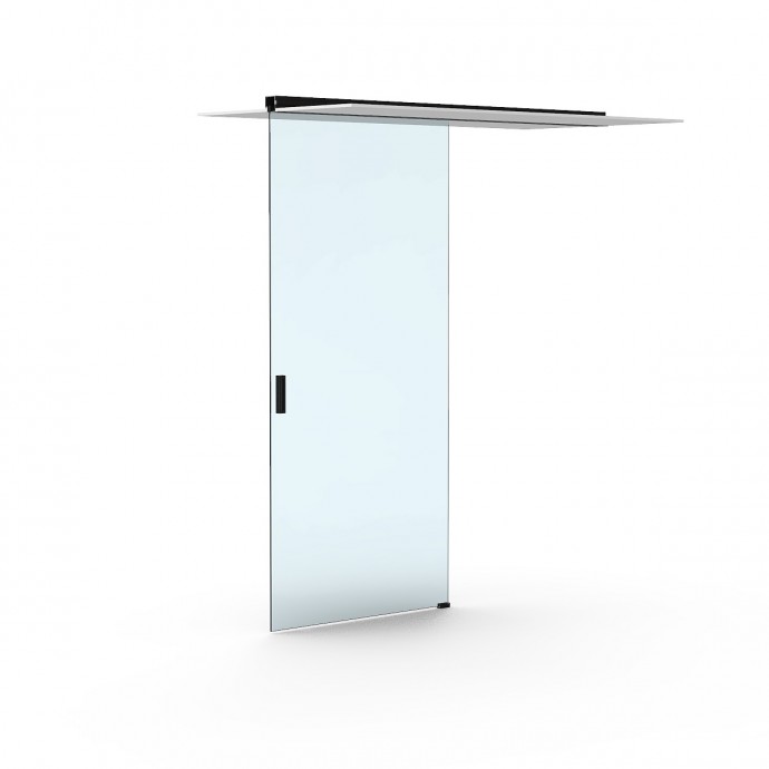 Perfil fabricado en aluminio con acabado anodizado 15 µ. plata mate. Guía compacta para instalación con falsos techos, lo que hace de el que se puedan proyectar instalaciones con herraje oculto y predominio de los paneles de vidrio que surgen desde el techo, ofreciendo una estética altamente liviana y ligera.