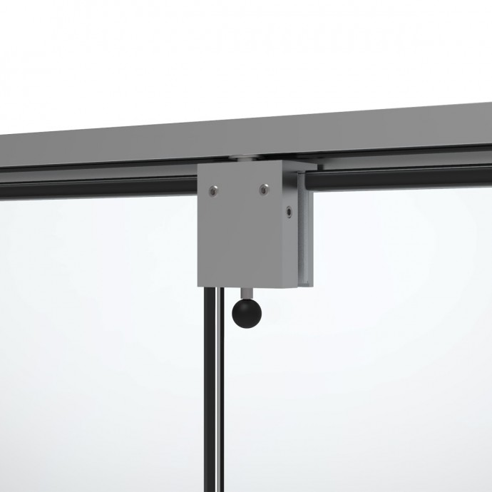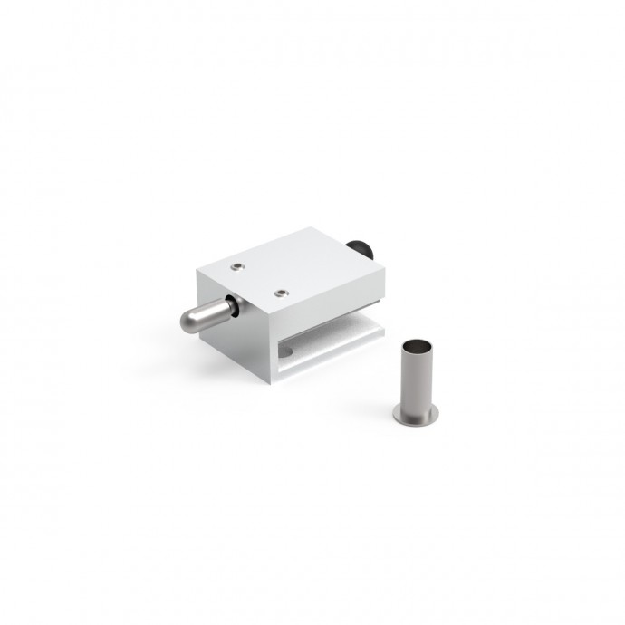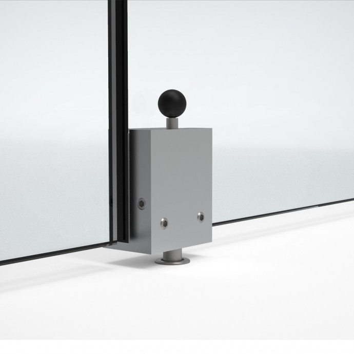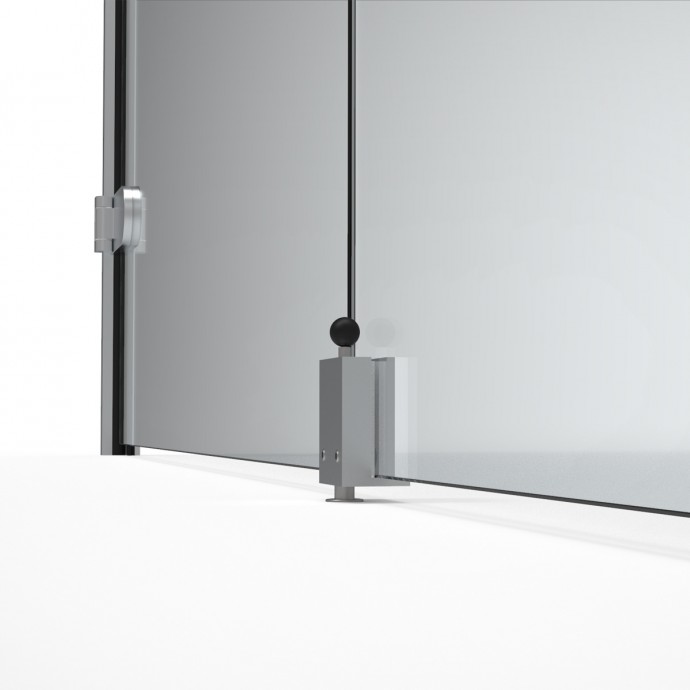 PASADOR DE SOBREPONER EN VIDRIO QUE PERMITE BLOQUEAR LA PUERTAS EN SU POSICIÓN CERRADA PARA SISTEMAS DE DOBLES PUERTAS DE VIDRIO.