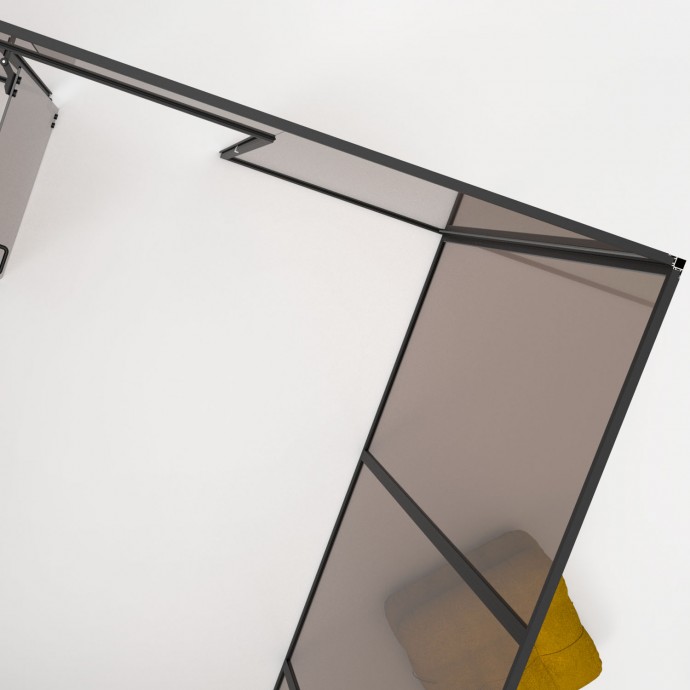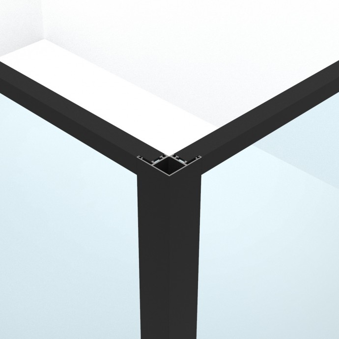 Perfil esquinero de SELEC, que permite instalación de paneles fijos angulares a 90º. El sistema está disponible  con una completa gama de accesorios. Fabricado en aluminio y acabados de alta resistencia.