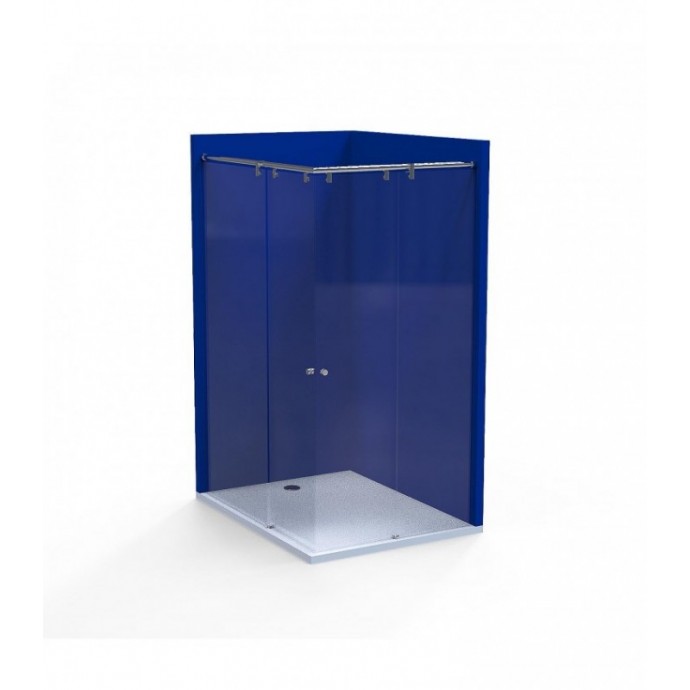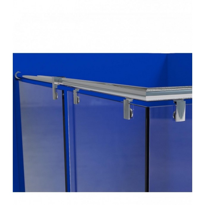 HERRAJE MAMPARA DUCHA COMPUESTA POR 2 PANELES FIJOS Y 2 PANELES MOVILES A 90º. 1 SOPORTE POR FIJO. CAPACIDAD DE CARGA 40KG. ACCESO EN VÉRTICE. ESPESOR VIDRIO 8MM. INCLUYE TIRADOR Y JUNTAS ESTANQUEIDAD