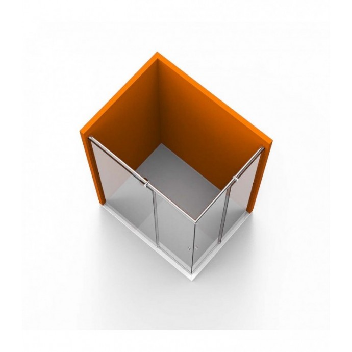 HERRAJE MAMPARA DUCHA COMPUESTA POR 1 PANEL FIJO 1 PANEL MӖIL + 1 PANEL MӖIL + 1 PANEL FIJO 90º. 1 SOPORTE POR FIJO. ACCESO EN VɒTICE. ESPESOR VIDRIO 8MM. INCLUYE TIRADOR 10.00S005. INCLUYE JUNTAS ESTANQUEIDAD